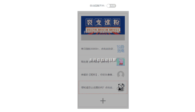 粉絲首次關注公眾號,就能收到一條圖文,標題、摘要、頭圖、鏈接都可以自定義,粉絲昵稱、性別、頭像等參數可自動獲取。